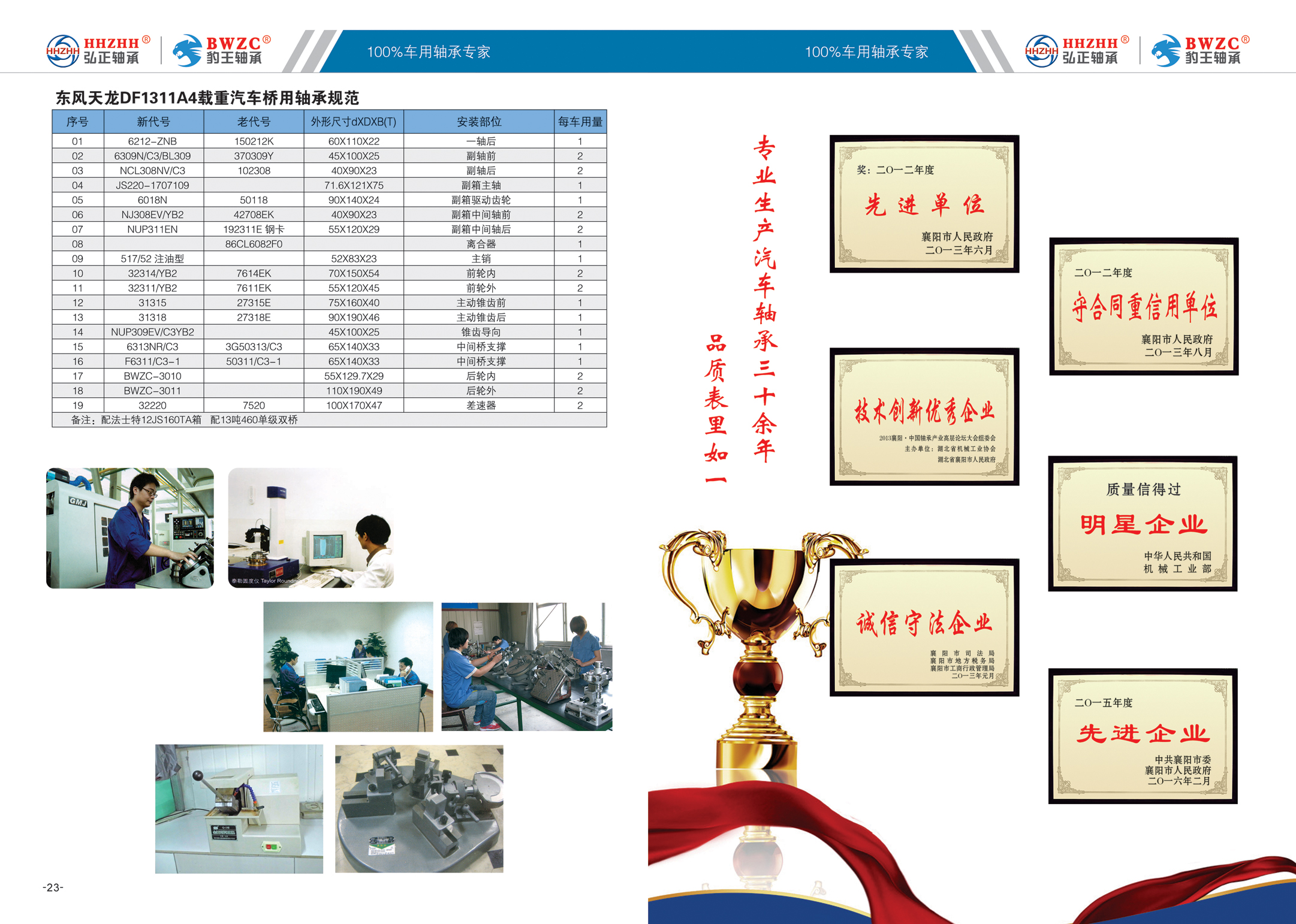 湖北省襄陽市騰工軸承有限公司,坐落于中國汽車產(chǎn)業(yè)零部件基地--襄陽,是一家專業(yè)從事軸承開發(fā)、生產(chǎn)及銷售于一體的企業(yè)。公司依靠襄陽軸承生產(chǎn)基地的地理優(yōu)勢,擁有一批多年從事軸承等相關(guān)技術(shù)研究生產(chǎn)的高級(jí)工程人員,先進(jìn)雄厚的技術(shù)加工設(shè)備,完善的檢驗(yàn)手段,能夠提供各種高品質(zhì)軸承。